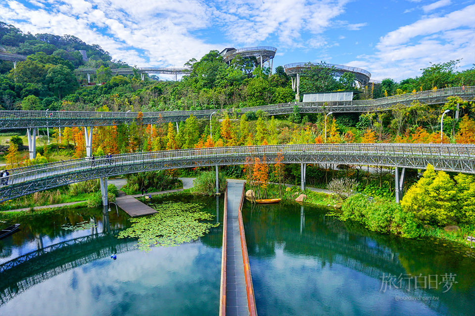 最大的亮點在於生態池中的水上棧道,低於水面的位置讓人感覺被自然環抱其中,體會在水上走過的愜意。