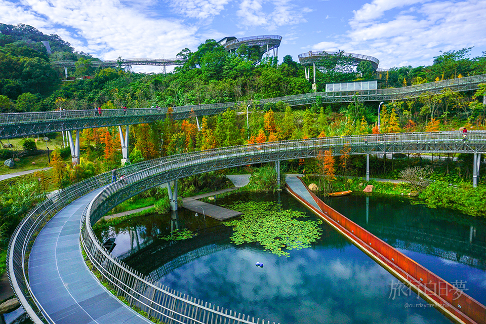 沿著金牛山脊建置的「福道」層層盤旋,自然色彩隨四季更迭一路綿延天邊,彷彿一座空中森林。全程19公里的鋼架懸橋更像一座綠色長城,因此獲得《2017年國際建築大獎(IAA , International Architecture Awards)》。該獎項是建築界的潮流標竿,必須突破設計、具藝術價值。