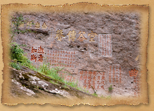 初入六曲時有兩處特殊景觀不容錯過,一是維妙維肖的目魚石,真的像到可以亂人耳目;一是目魚岩後的響聲岩,能引發空谷回音,在此唱山歌最是過癮,一人唱可得山谷合音之美,許多騷人墨客喜歡在此大作文章,留下無數摩崖石刻多達廿餘處,其中以朱熹的「逝者如斯」最發人深省,刻在山湄水涯非常貼切‧ |